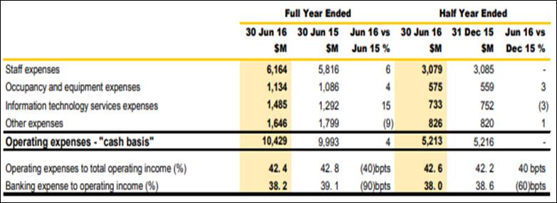 Operating Expenses of CBA in 2016