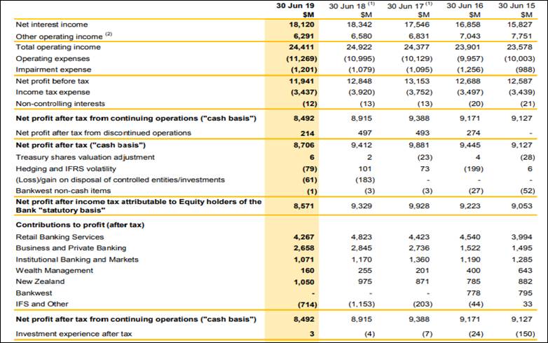 Year Financial Report of CBA (from 2015 to 2019)